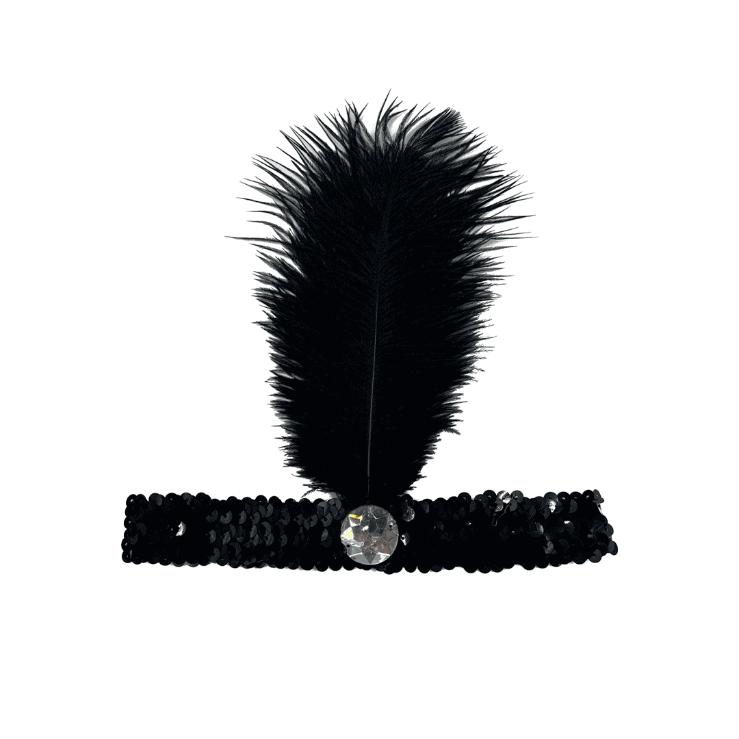 Diadema negra con lentejuelas y dos plumas estilo flapper de los años 20 (accesorio de disfraz)