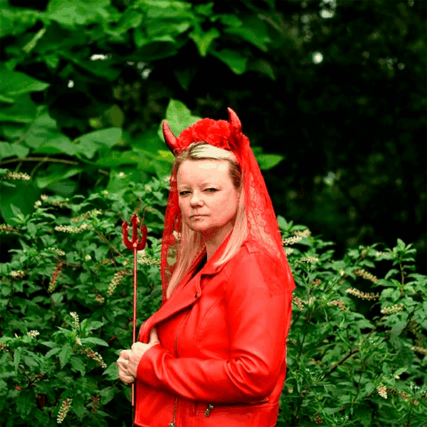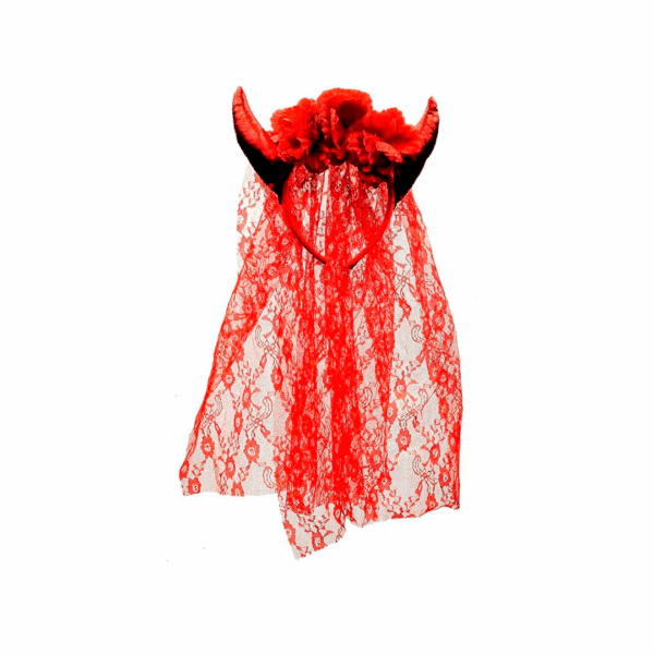 Diadema Floral Encaje Velo Demonio. El velo demoníaco mide 8 1/2 pulgadas de cuerno a cuerno y el velo cuelga aprox. 18.1 in Largo