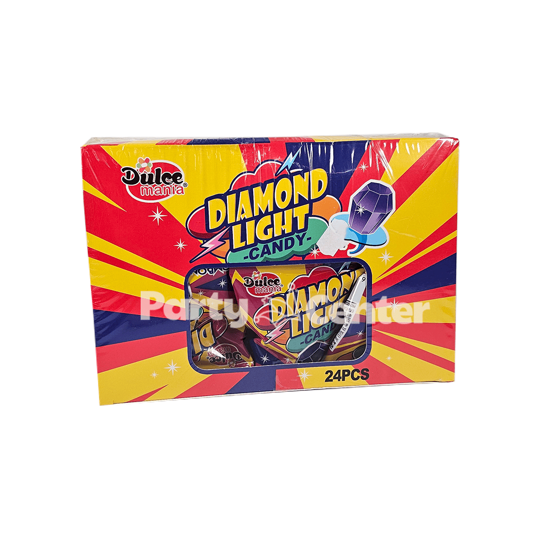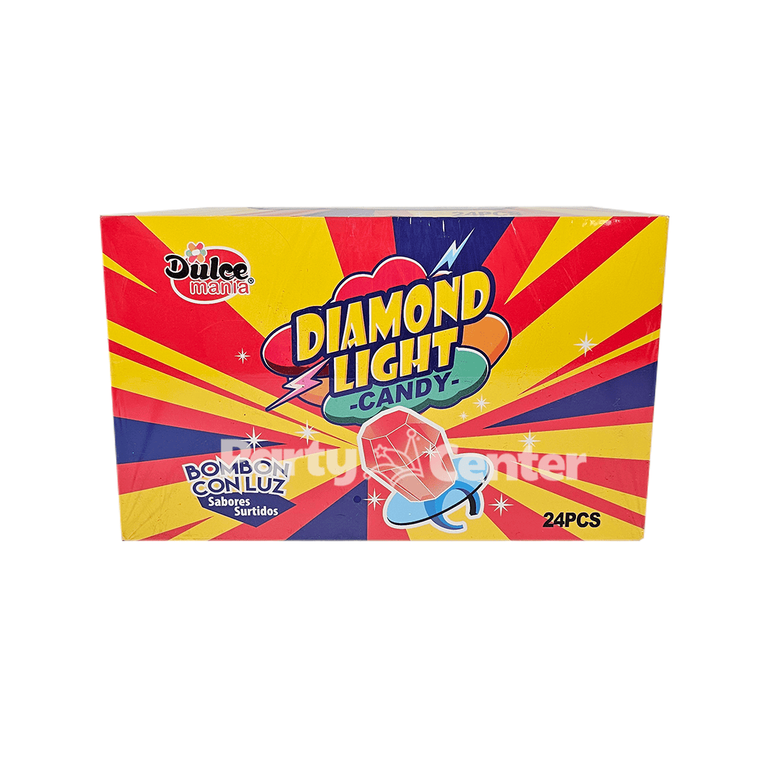 Diamond Light, dulce de anillo sabores y colores surtidos, caja de 24 unidades.