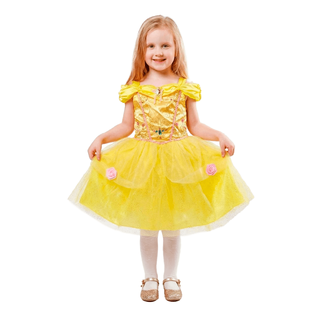 Disfraz de Bella, de La Bella y la bestia de Disney, disponible en talla 2-4 años o 4/6 años.