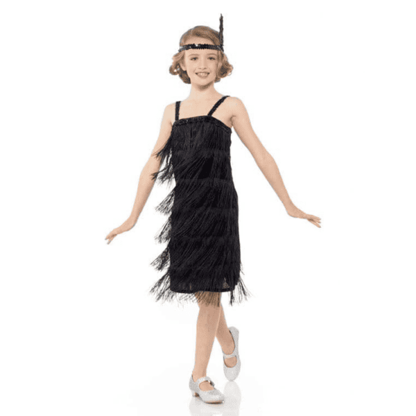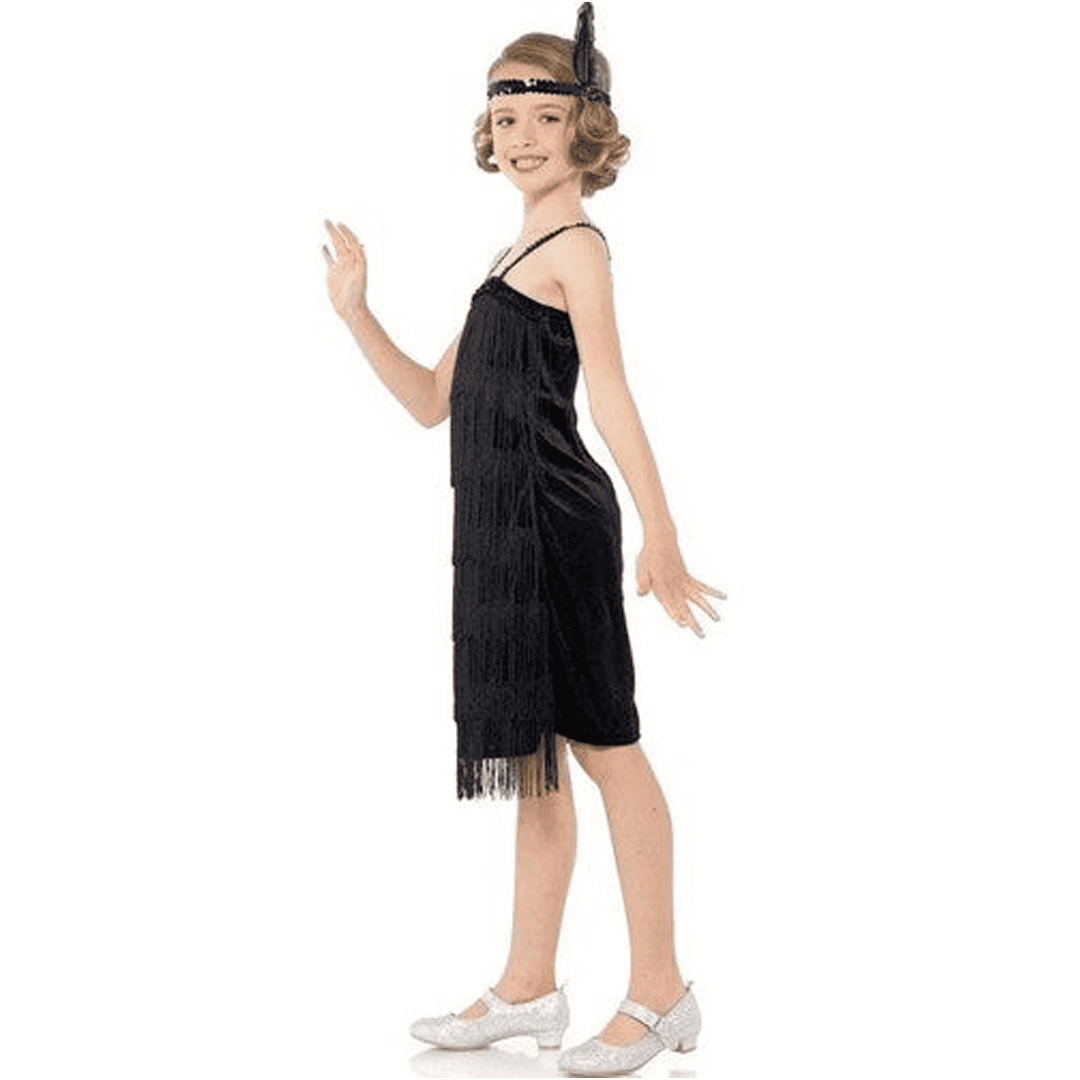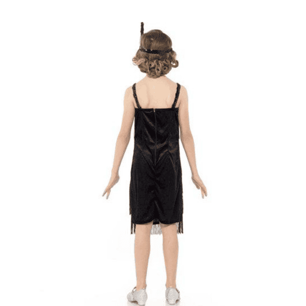 Disfraz de bailarina flapper negra de los años 20 para niña tallas S (3 a 4 años)