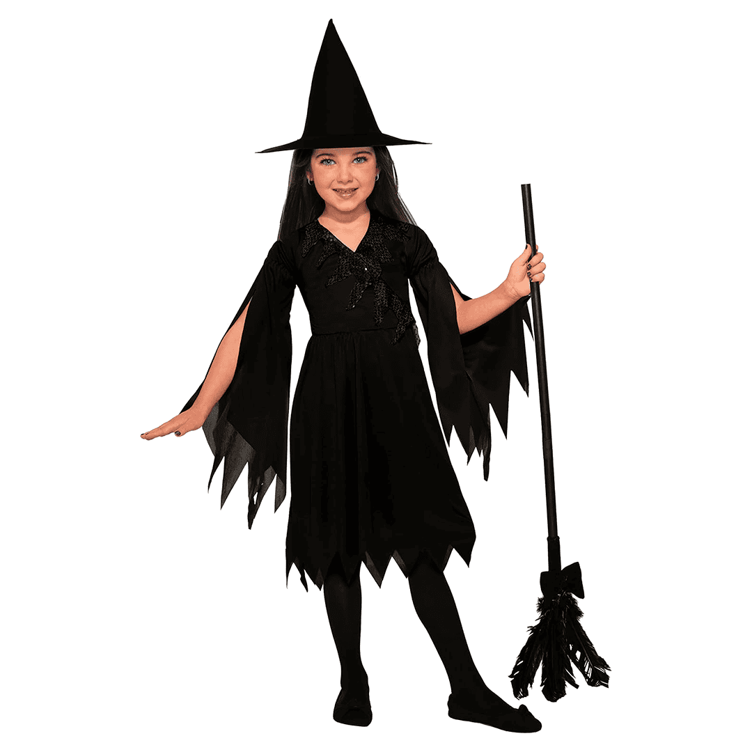 Disfraz de Bruja clásico para niños y Sombrero, Color Negro, Talla S