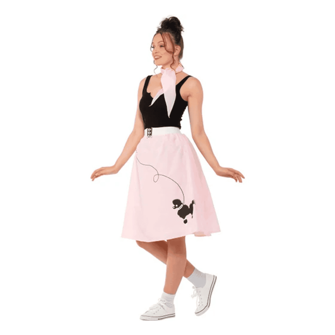 Disfraz de falda poodle rosa oscuro con corbata estilo 50s para mujer talla L