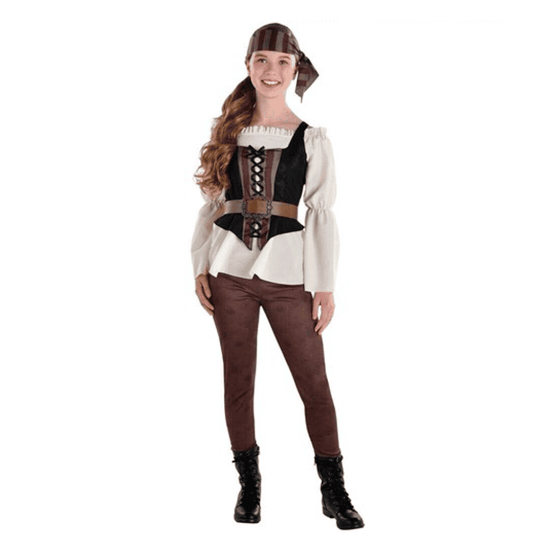 Disfraz de pirata para niña de 4 a 6 años, 4 piezas, con pañuelo en la cabeza