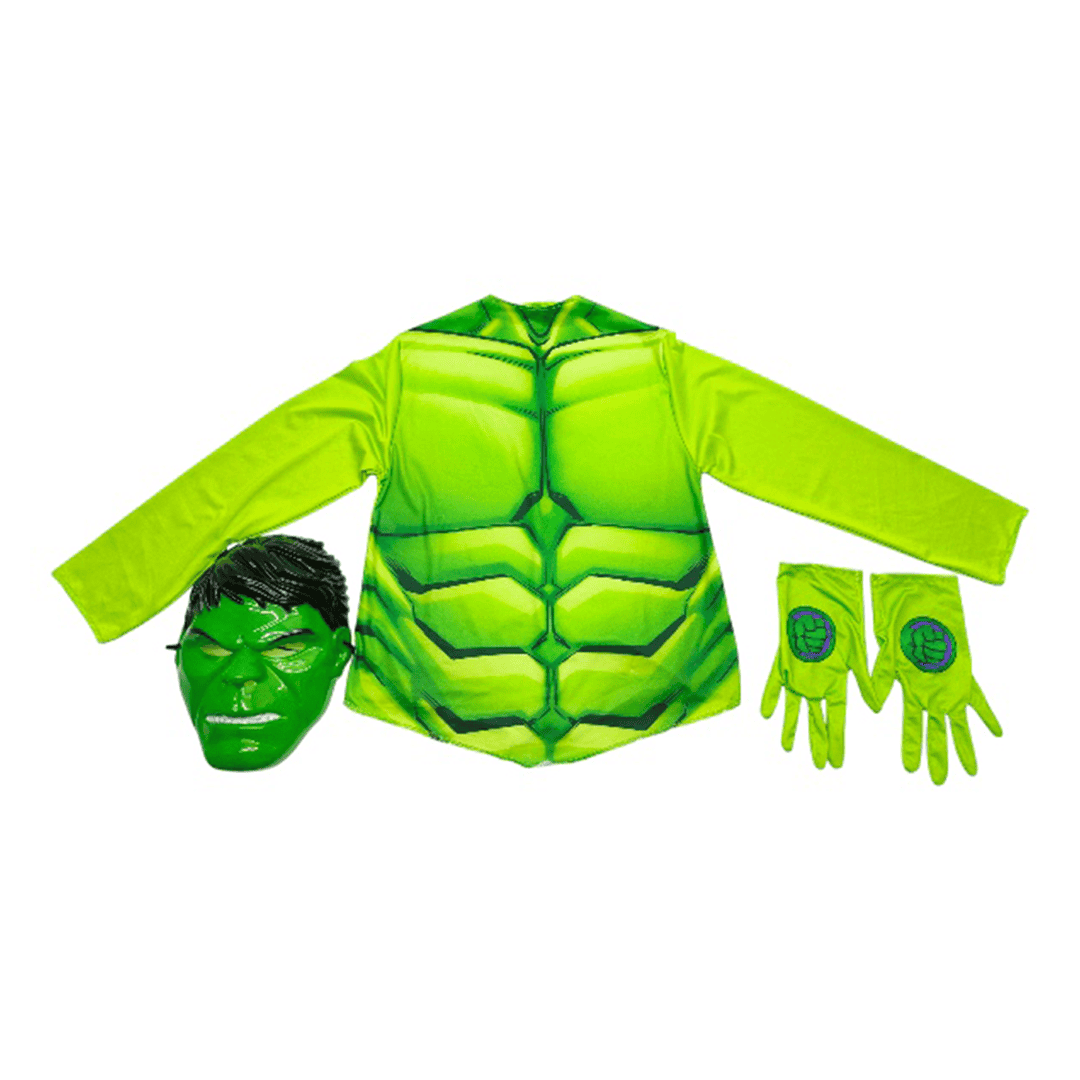 Disfraz Hulk, talla pequeña, incluye, camisa, guantes, máscara de personajes.