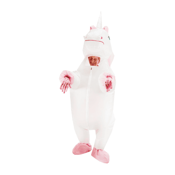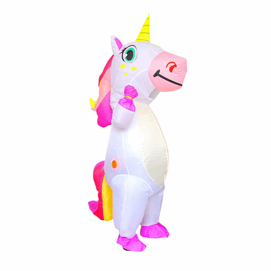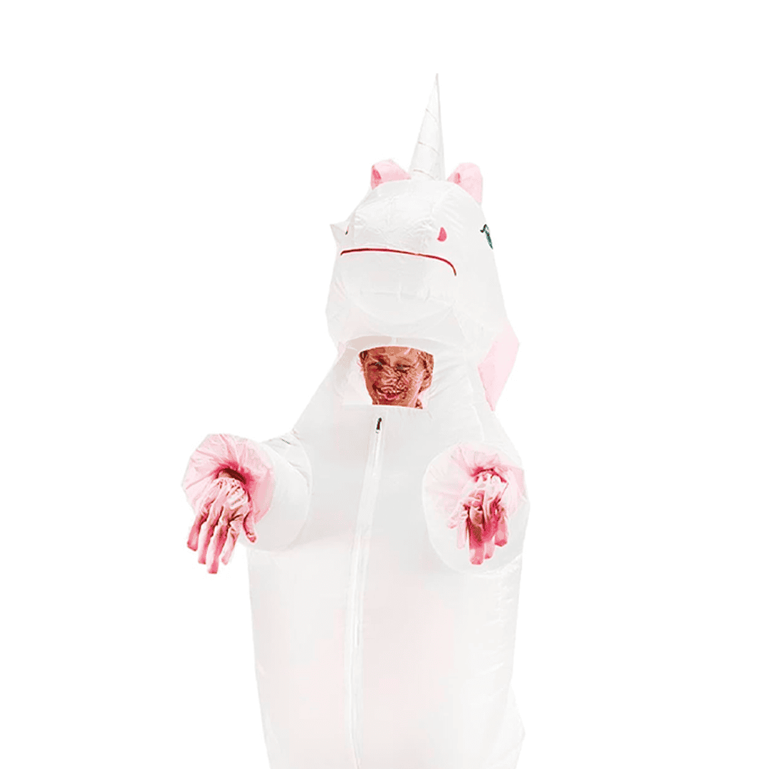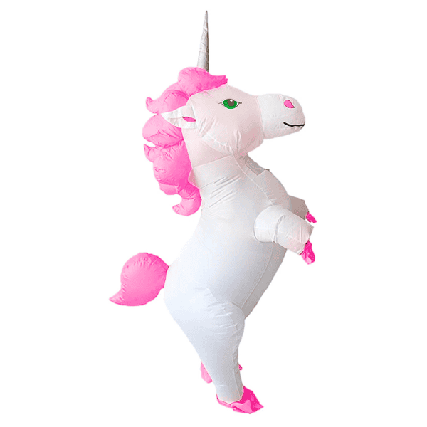Disfraz inflable de unicornio blanco y rosa