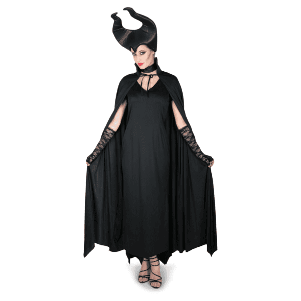 Disfraz Maléfica para adulto talla M, incluye capa, cuernos, vestido.