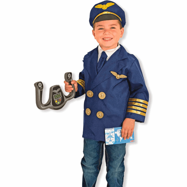 Melissa & Doug Disfraz piloto para niños y niñas, Traje de fiesta con accesorios, Juego de imitación, Disfraz de halloween o carnaval, Para niños y niñas de 3-6 años, Color Azul, 61.5 x 3.8 x 44.4 cm