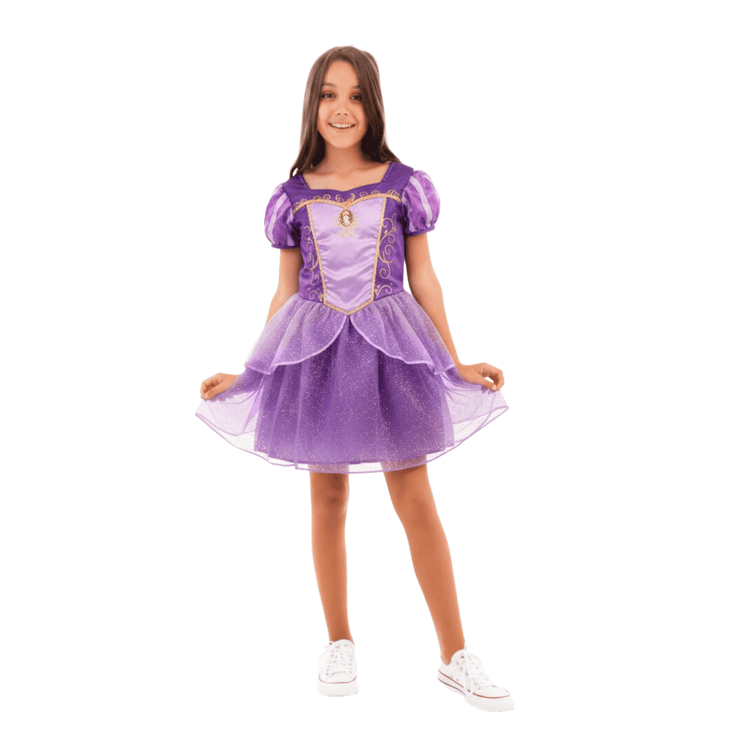 Disfraz Rapunzel de Enredados de Disney, disponible en talla 2-4 años o 4/6 años.