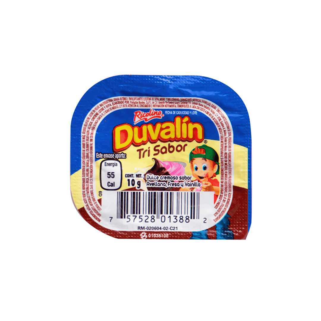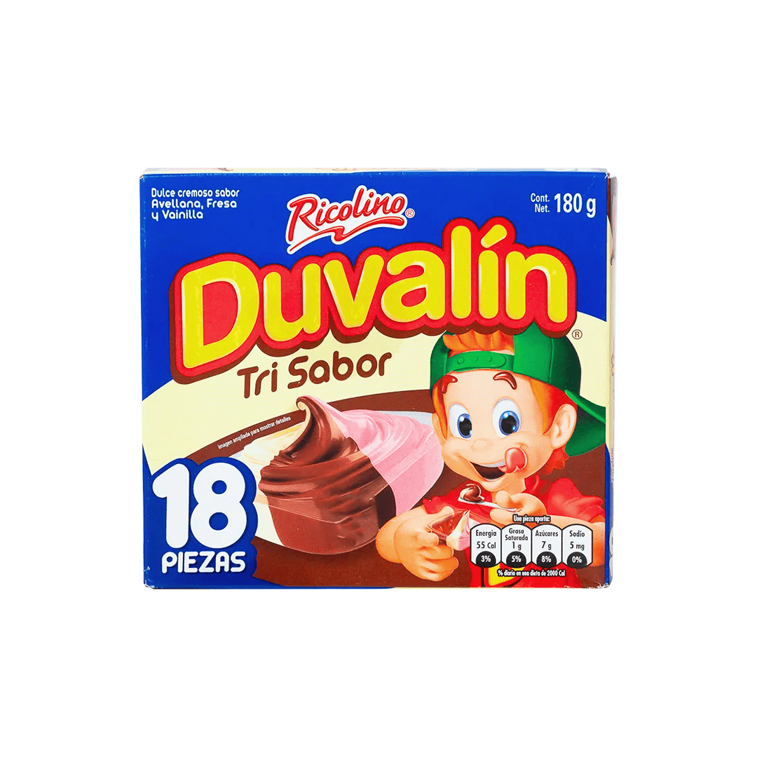Duvalín Chocolate Tri Sabor, 180gr. Paquete de18 unidades.