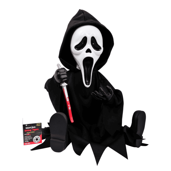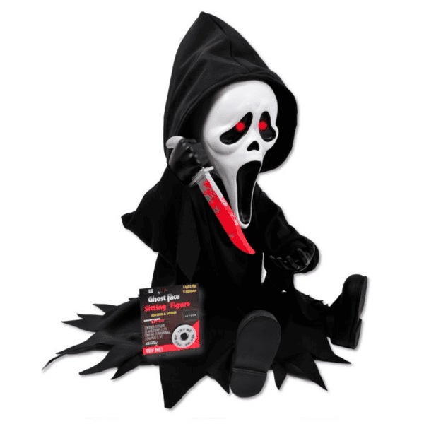 Figura sentada de Ghost Face coleccionable con movimiento, tamaño 28 cm (11 pulgadas). Licencia oficial.