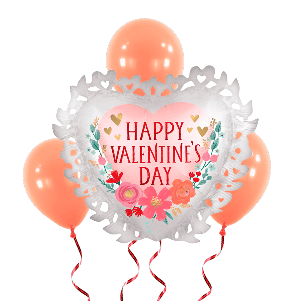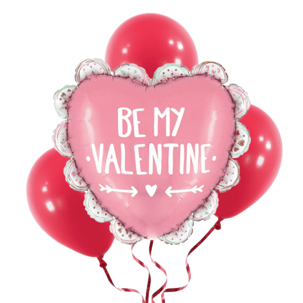 Bunch con helio incluye: Globo metálico en forma de corazón con volantes Be My Valentine de 29″ + 3 globos látex de 12″ (colores a elección) y peso para globos. 030625251518. Nota: el precio es exclusivo para compra en sitio web. Puede agregar la elección de colores en el check out.