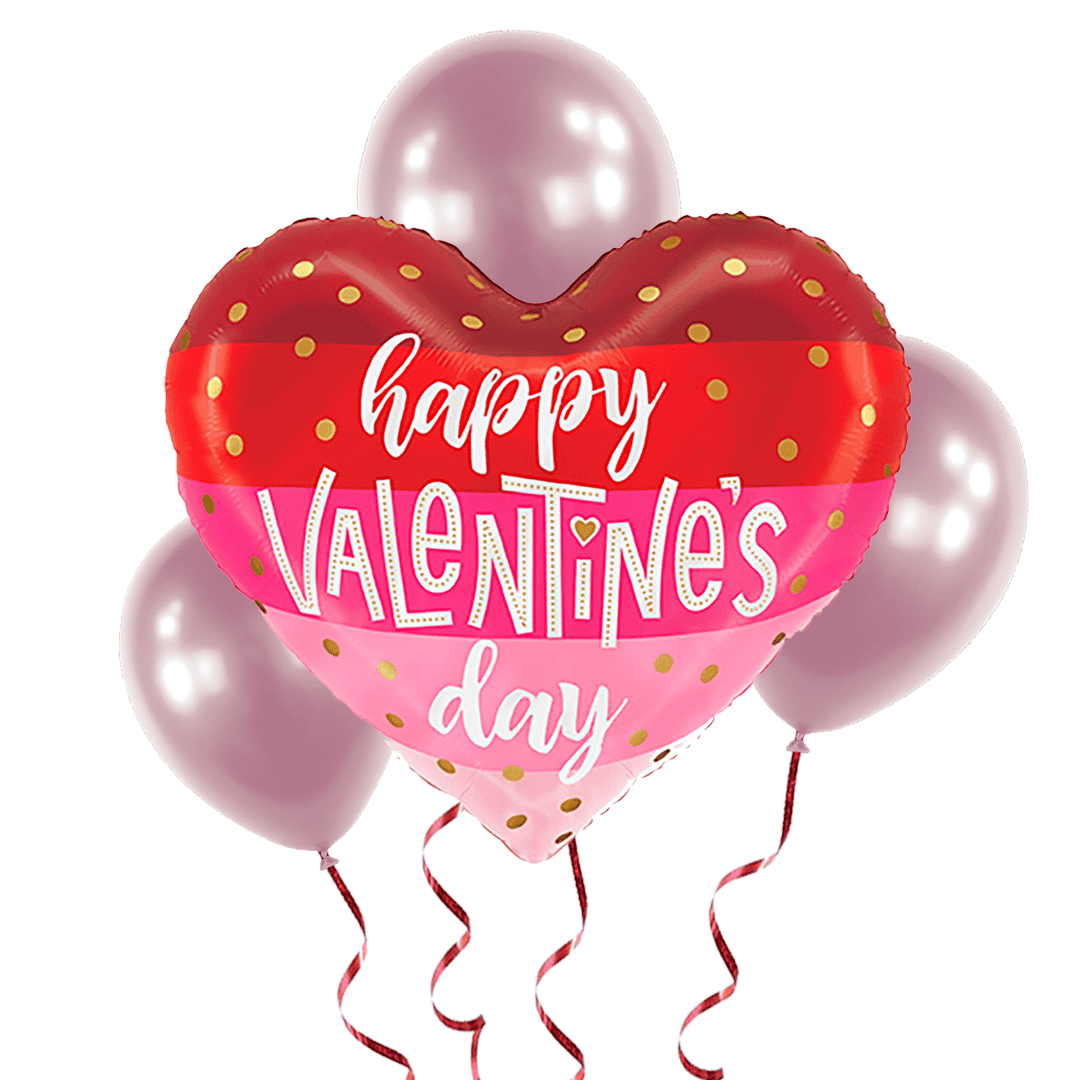 Bunch con helio incluye: Globo metálico en forma de corazón de rayas de 24″ + 3 globos látex de 12″ (colores a elección) y peso para globos. 030625253277. Nota: el precio es exclusivo para compra en sitio web. Puede agregar la elección de colores en el check out.