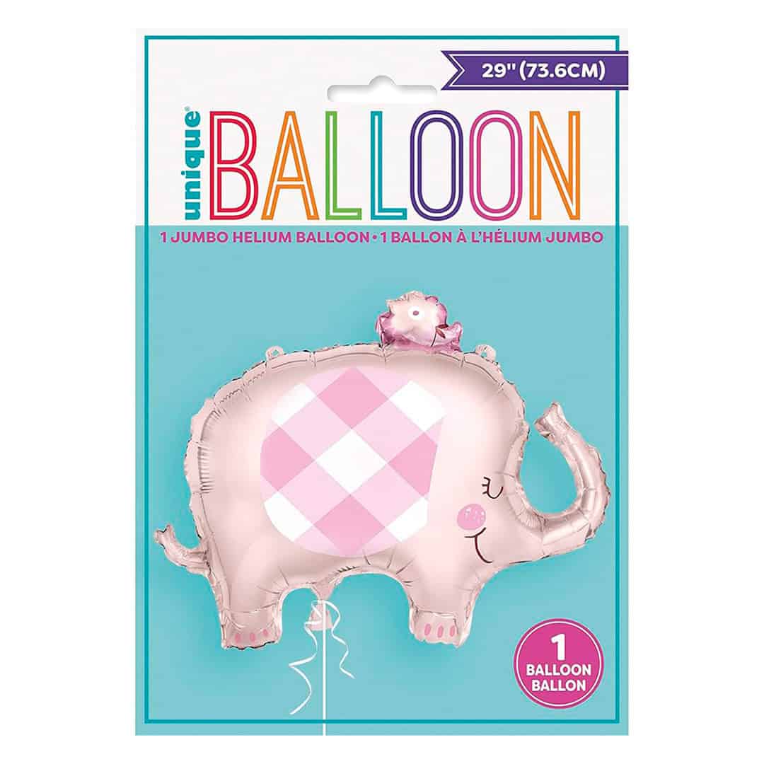 Globo jumbo metalico color rosado con diseño de elefante para baby shower