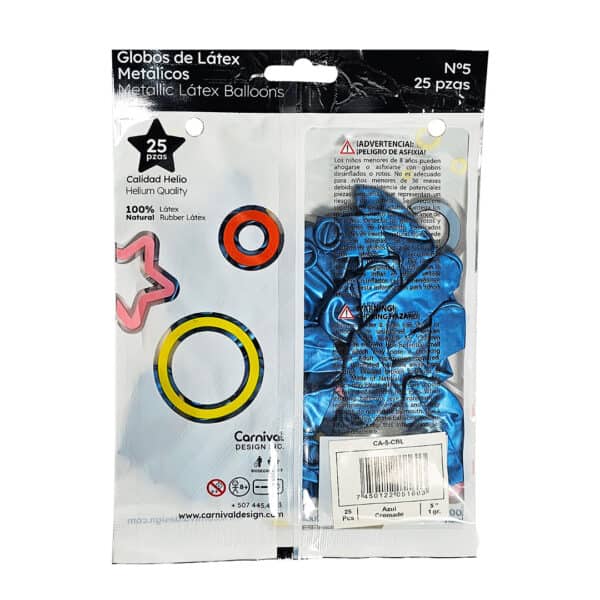 Globo látex cromado 5″ color azul, paquete de 25 unidades, ideal para fiestas corporativas, dia del padre, cumpleaños hombre, graduaciónes, fiesta del espacio.