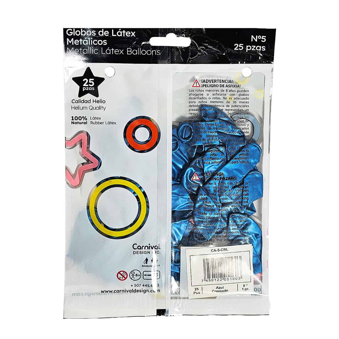 Globo Látex Azul Cromado 5″ | 25 unidades