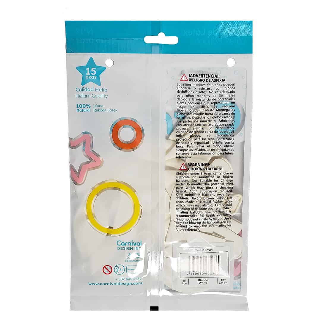 Globo Látex Blanco 12″ | 15 unidades