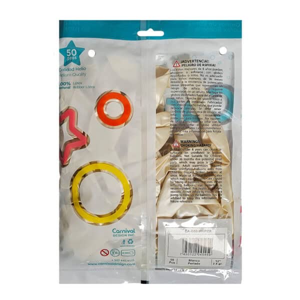 Globo Látex Blanco Perlado 12″ | 50 unidades