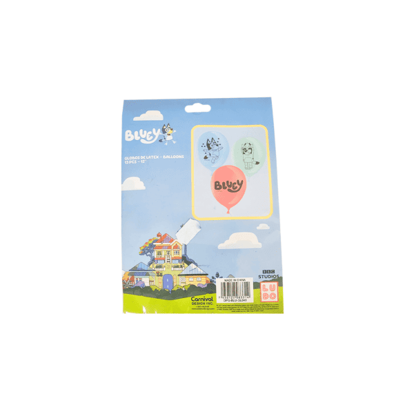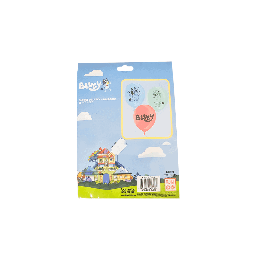 Globo de látex de 12 pulgadas con diseño de Bluey, paquete de 15 unidades, colores y diseños surtdos.