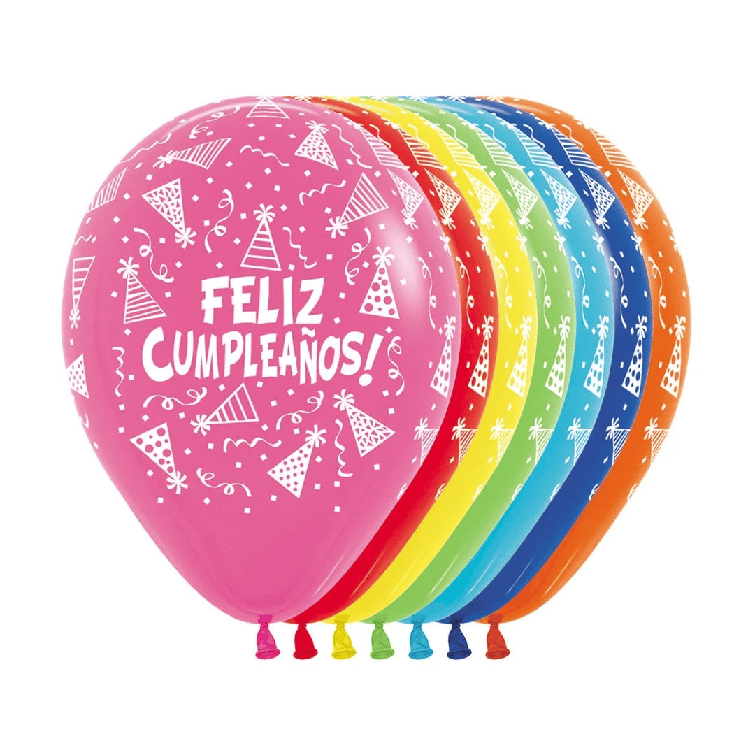 Globo látex estampado de Feliz cumpleaños gorritos cantidad