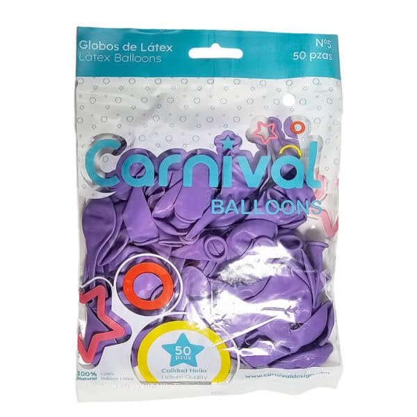 Globo látex 5″ color lila, paquete de 50 unidades, ideal para cumpleaños juvenil, quince años, fiesta de hadas, dia de la mujer.