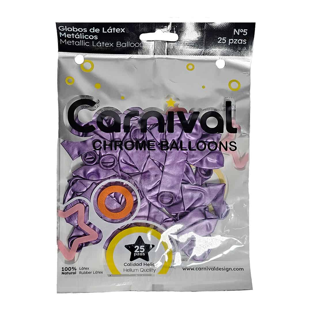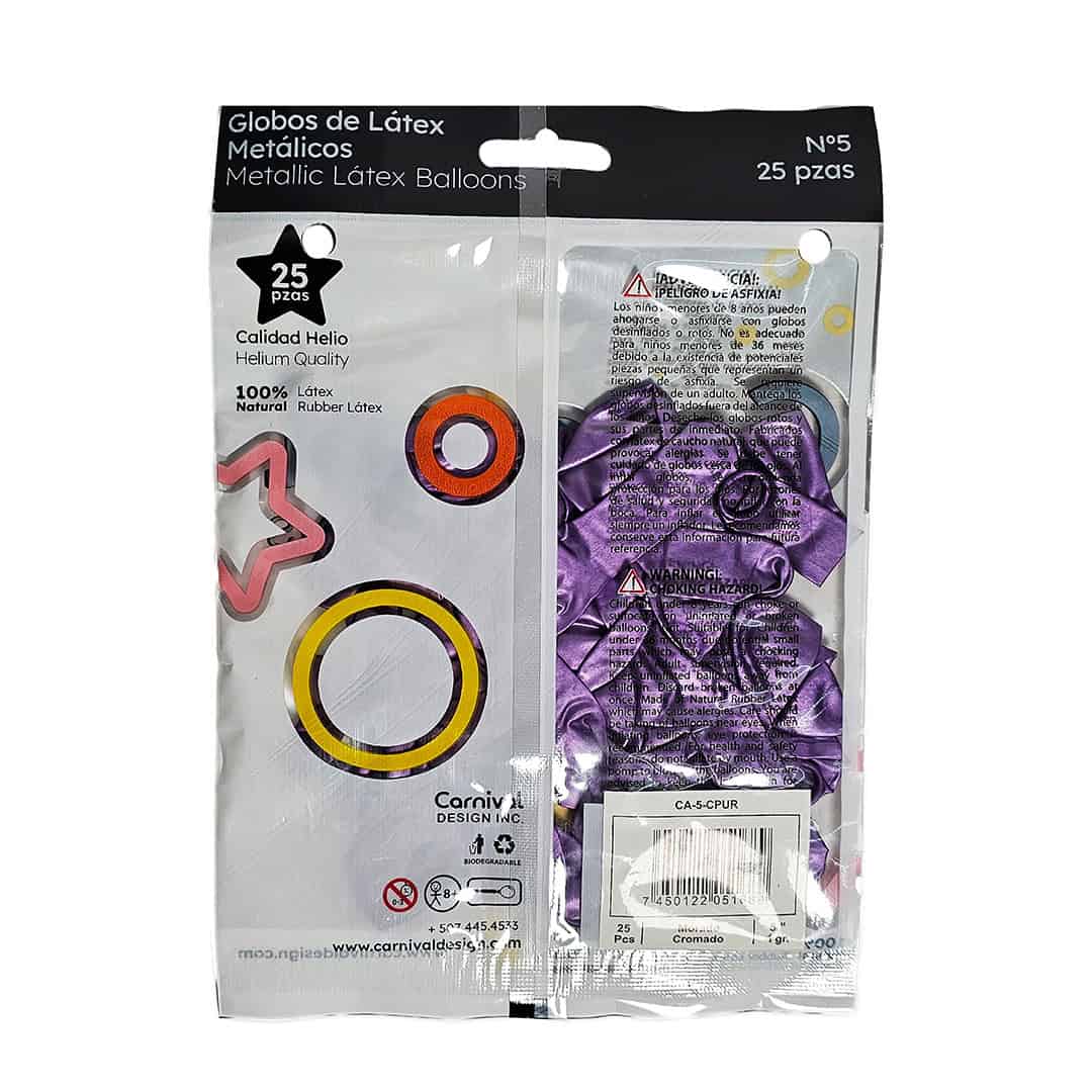 Globo látex cromado 5″ color morado, paquete de 25 unidades, ideal para fiesta de mardi gras, princesas, fiesta de mascaras, cumpleaños mujer.