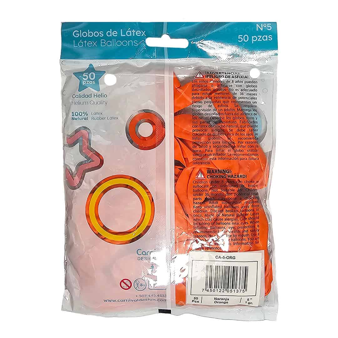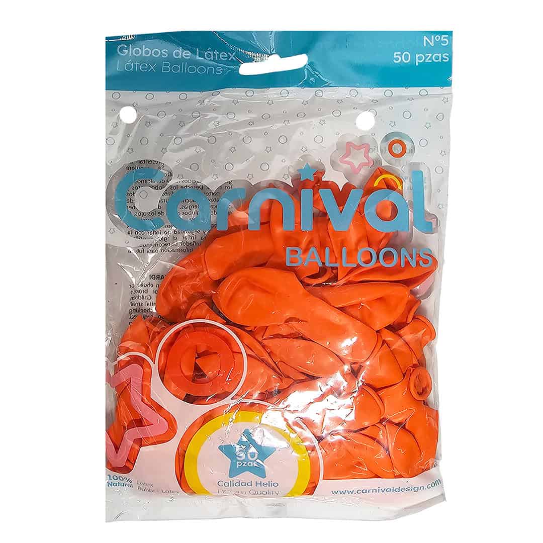 Globo látex 5″ color naranja, paquete de 50 unidades, ideal para cumpleaños, halloween, evento deportivo, activación de marca, fiesta con temática de frutas.