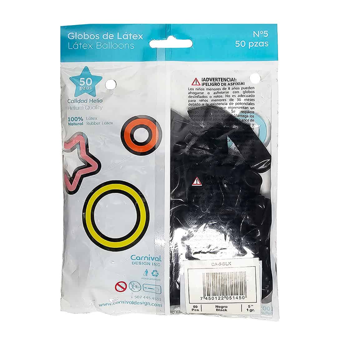 Globo Látex Negro 5″ | 50 unidades