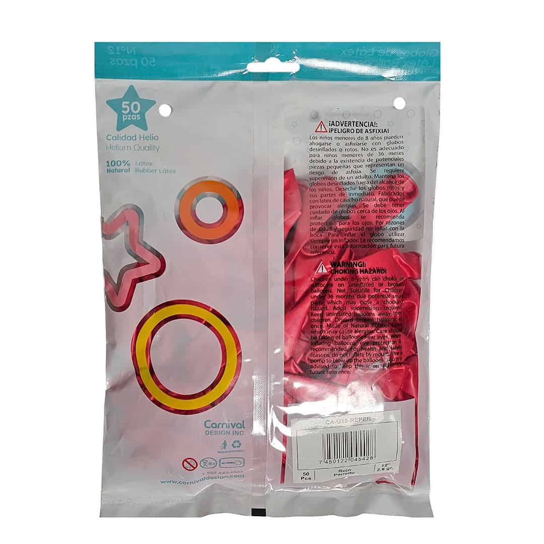 Globo látex 12″ color rojo perlado, paquete de 50 unidades, ideal para san valentin, aniversario, fietsa elegante de navidad.