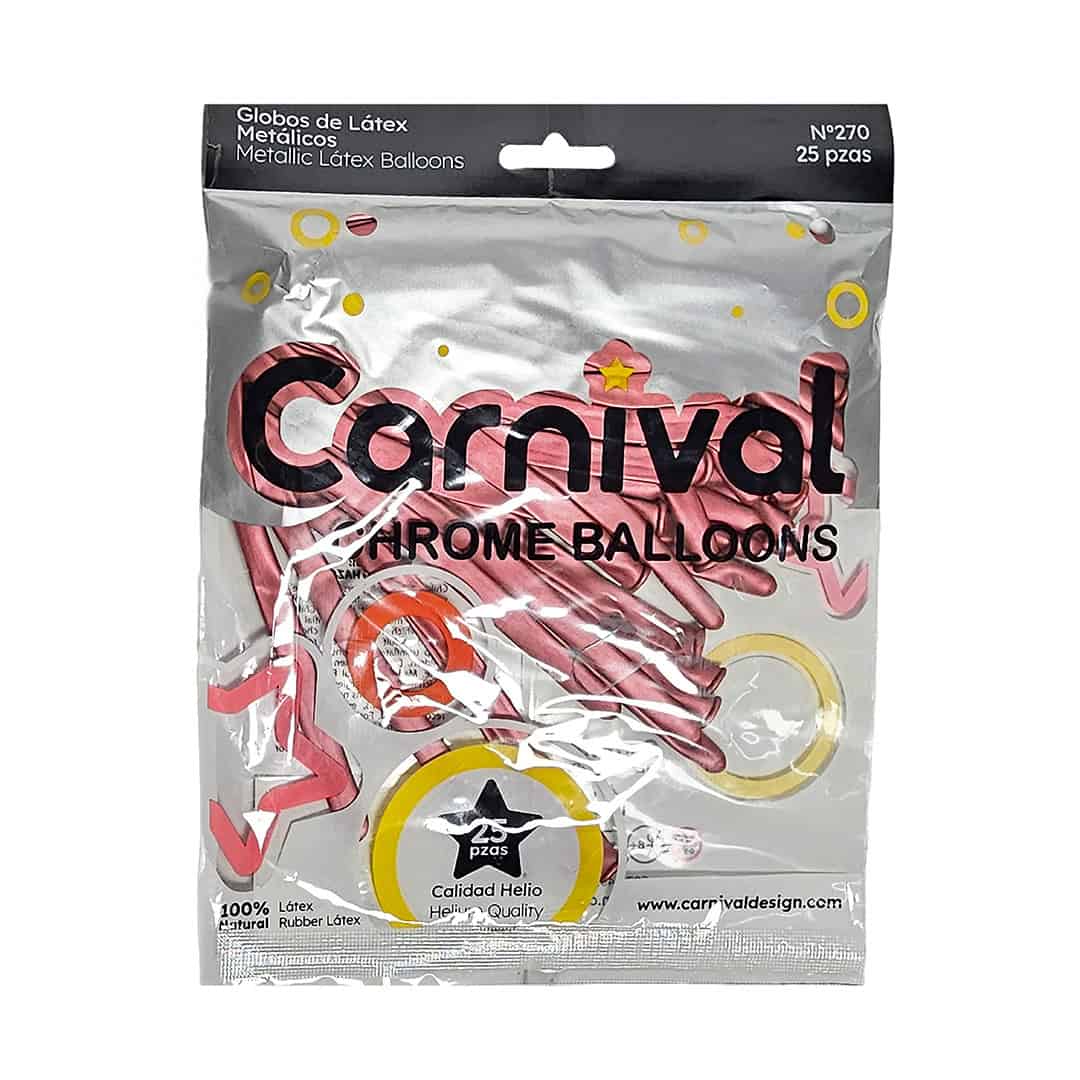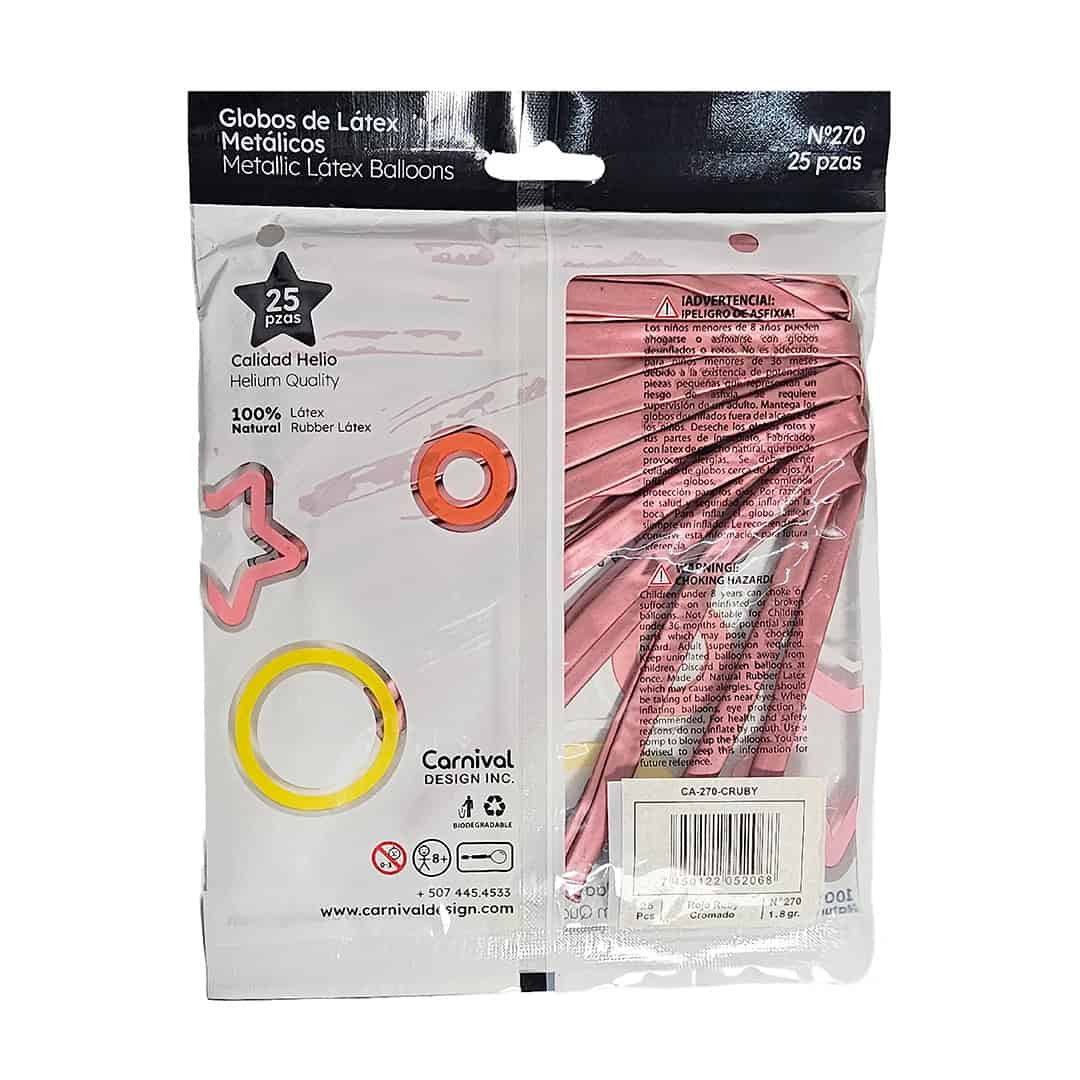 Globo látex 270″ color rosa ruby cromado, paquete de 25 unidades, ideal para decoracion de cumpleaños, bridal shower, fiesta elegante.