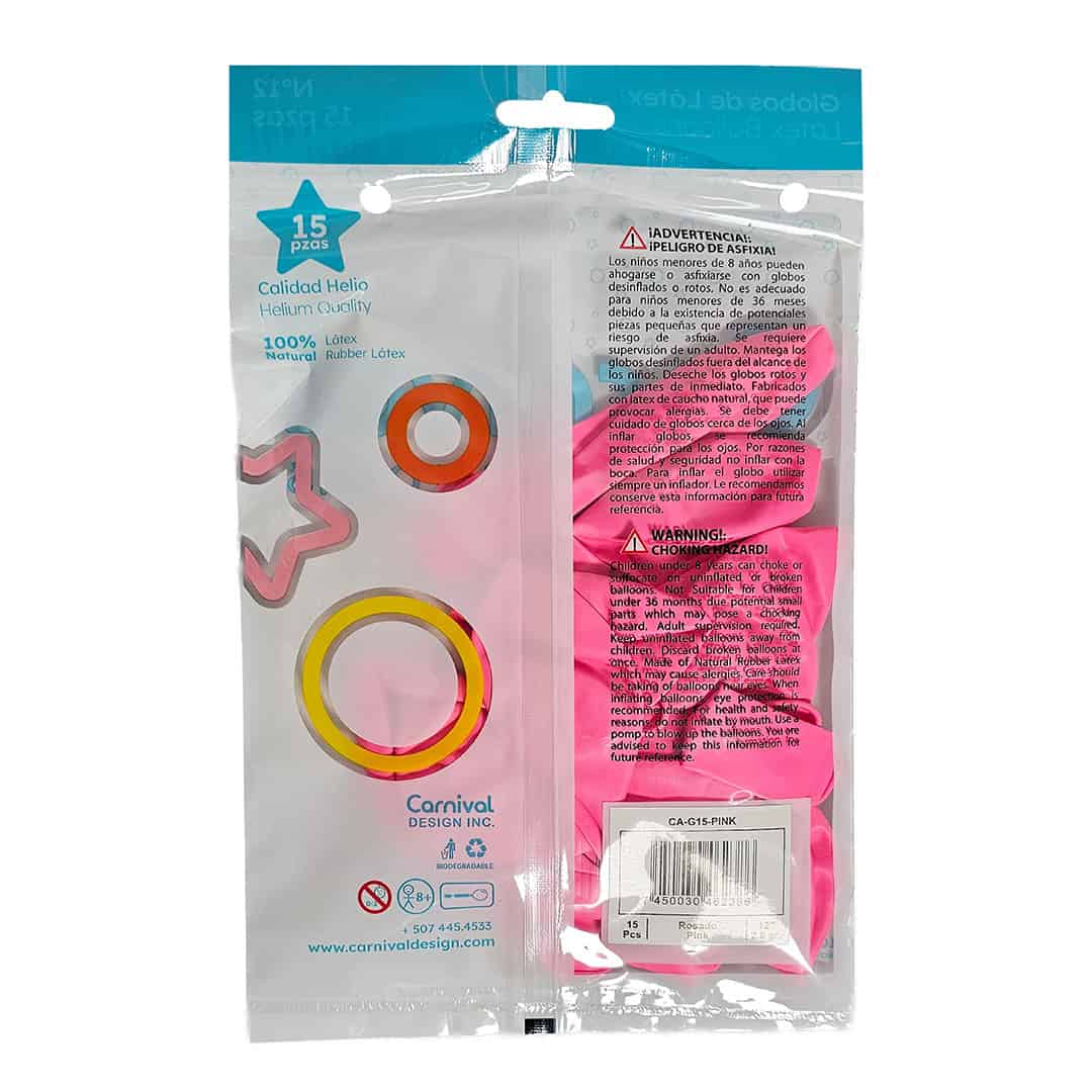 Globo Látex Rosado 12″ | 15 unidades