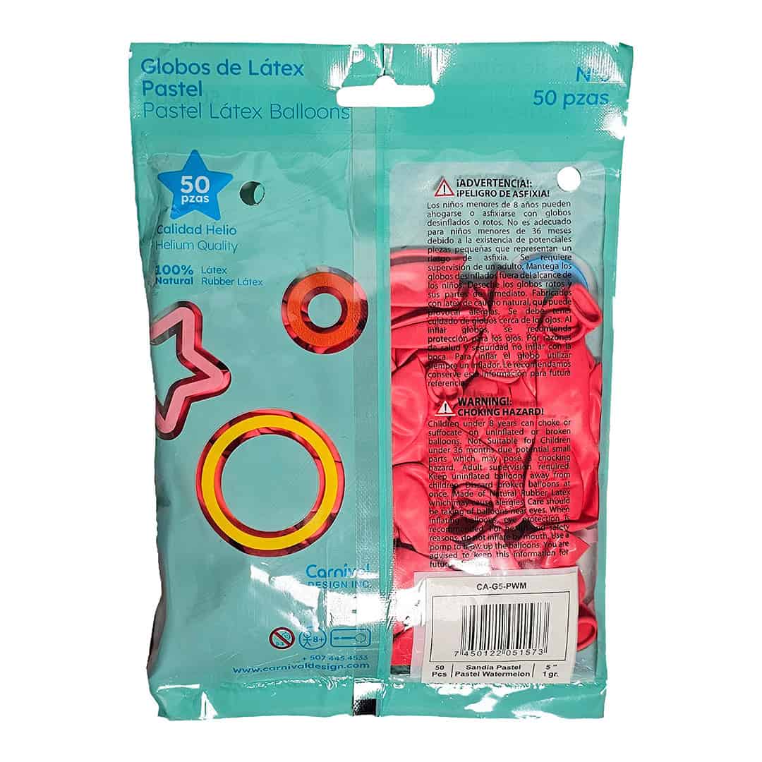 Globo látex 5″ color sandia pastel, paquete de 50 unidades, ideal para fiesta tropical, picnic party, cumpleaños infantil, pool party.