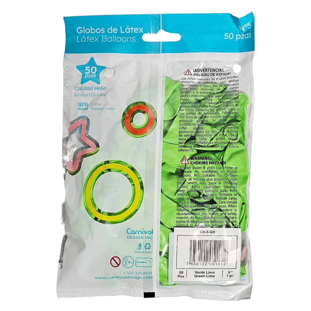 Globo Látex Verde Lima 5″ | 50 unidades