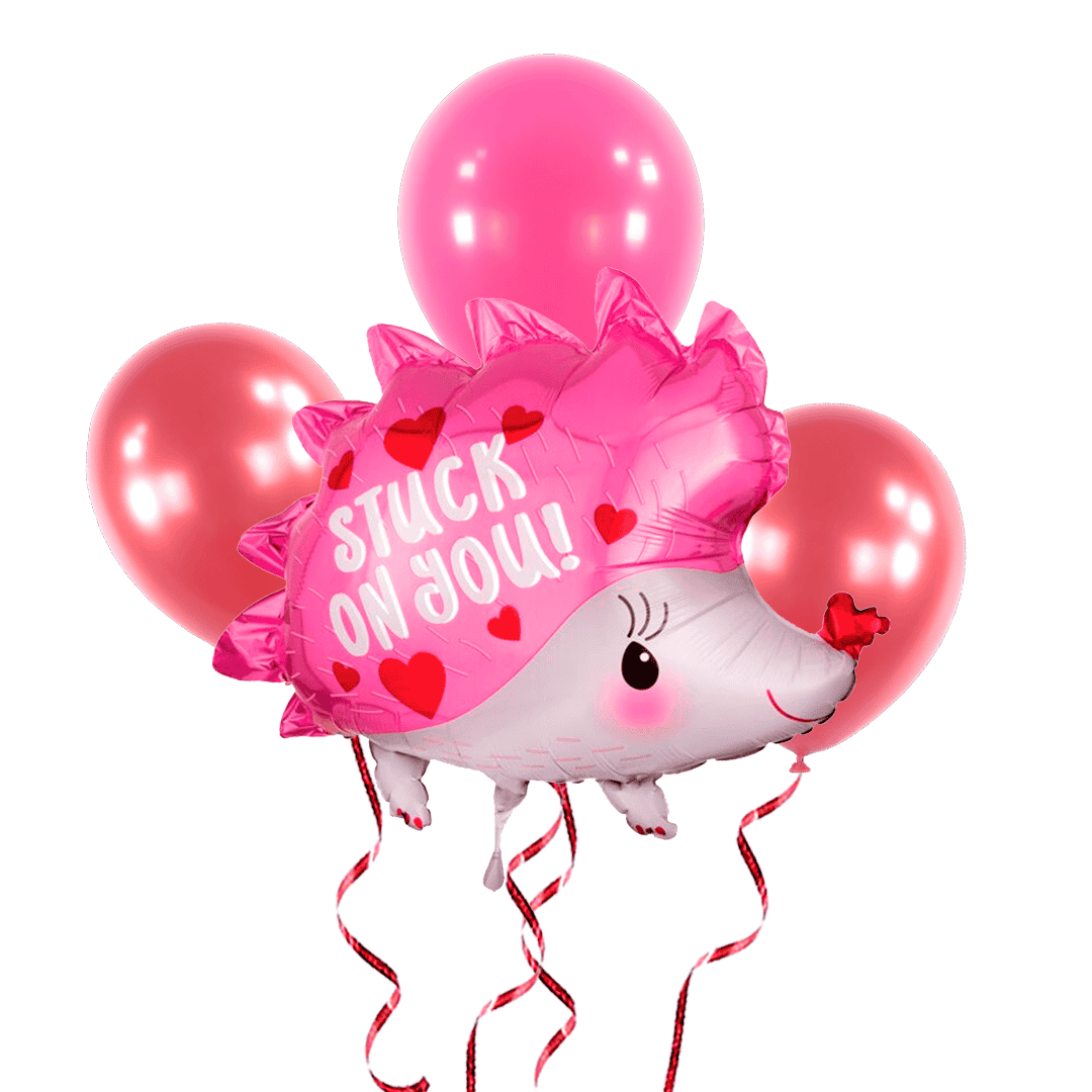 Bunch con helio incluye: Globo metálico en forma de erizo, San Valentín de 26″ + 3 globos látex de 12″ (colores a elección) y peso para globos. 026635404730. Nota: el precio es exclusivo para compra en sitio web. Puede agregar la elección de colores en el check out.