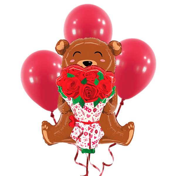 Bunch con helio incluye: Globo metálico en forma de oso con ramo de 25″ + 3 globos látex de 12″ (colores a elección) y peso para globos. 030625253314. Nota: el precio es exclusivo para compra en sitio web. Puede agregar la elección de colores en el check out.