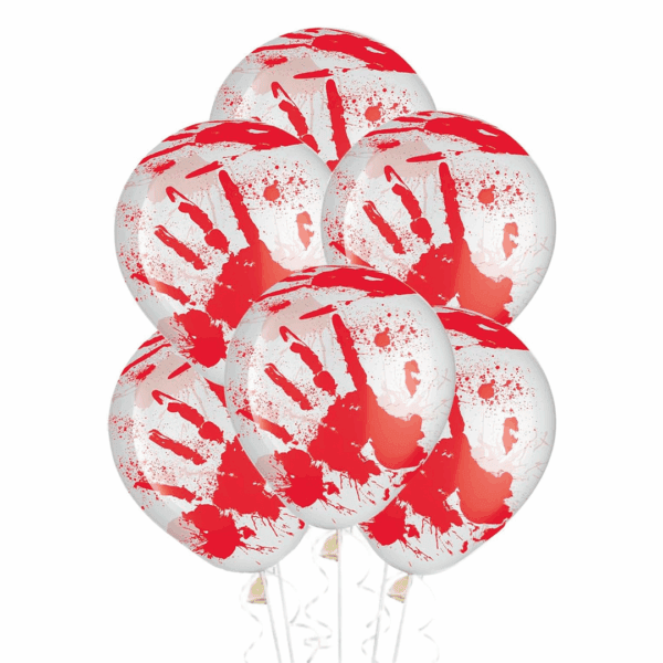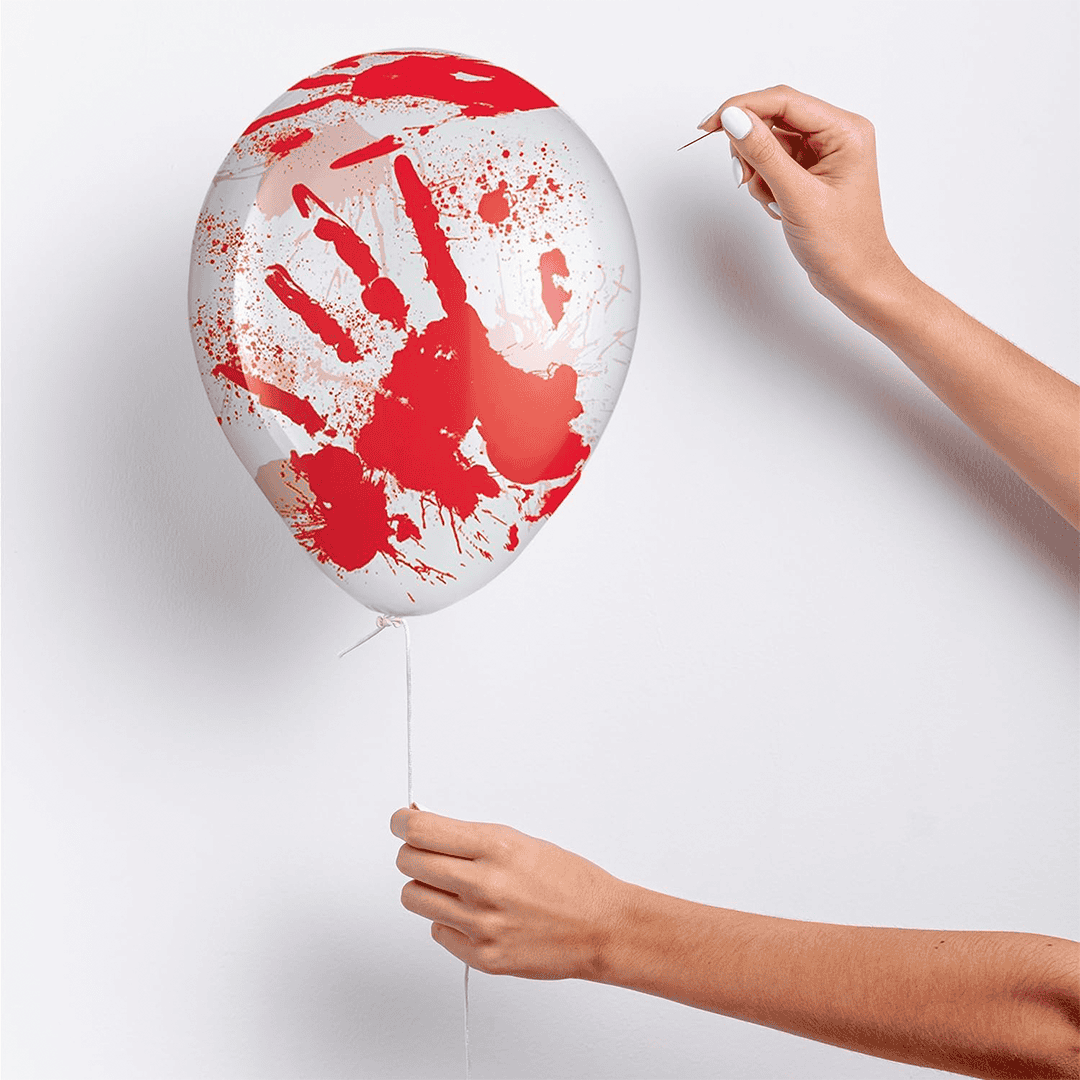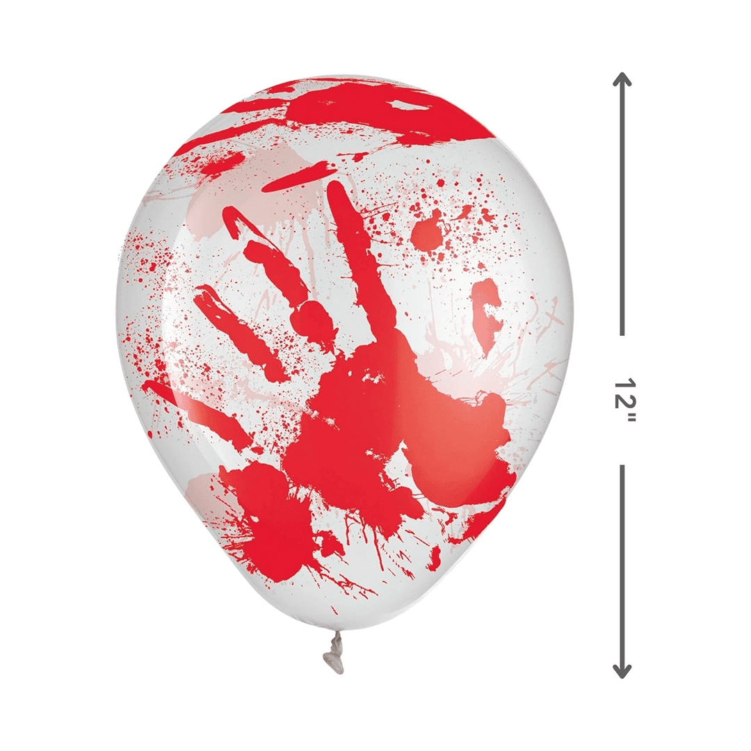 Globos de látex salpicados de sangre (12 pulgadas), paquete de 6, transparente emocionante con diseño de terror rojo para decoración de fiestas espeluznantes y celebraciones inolvidables