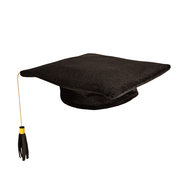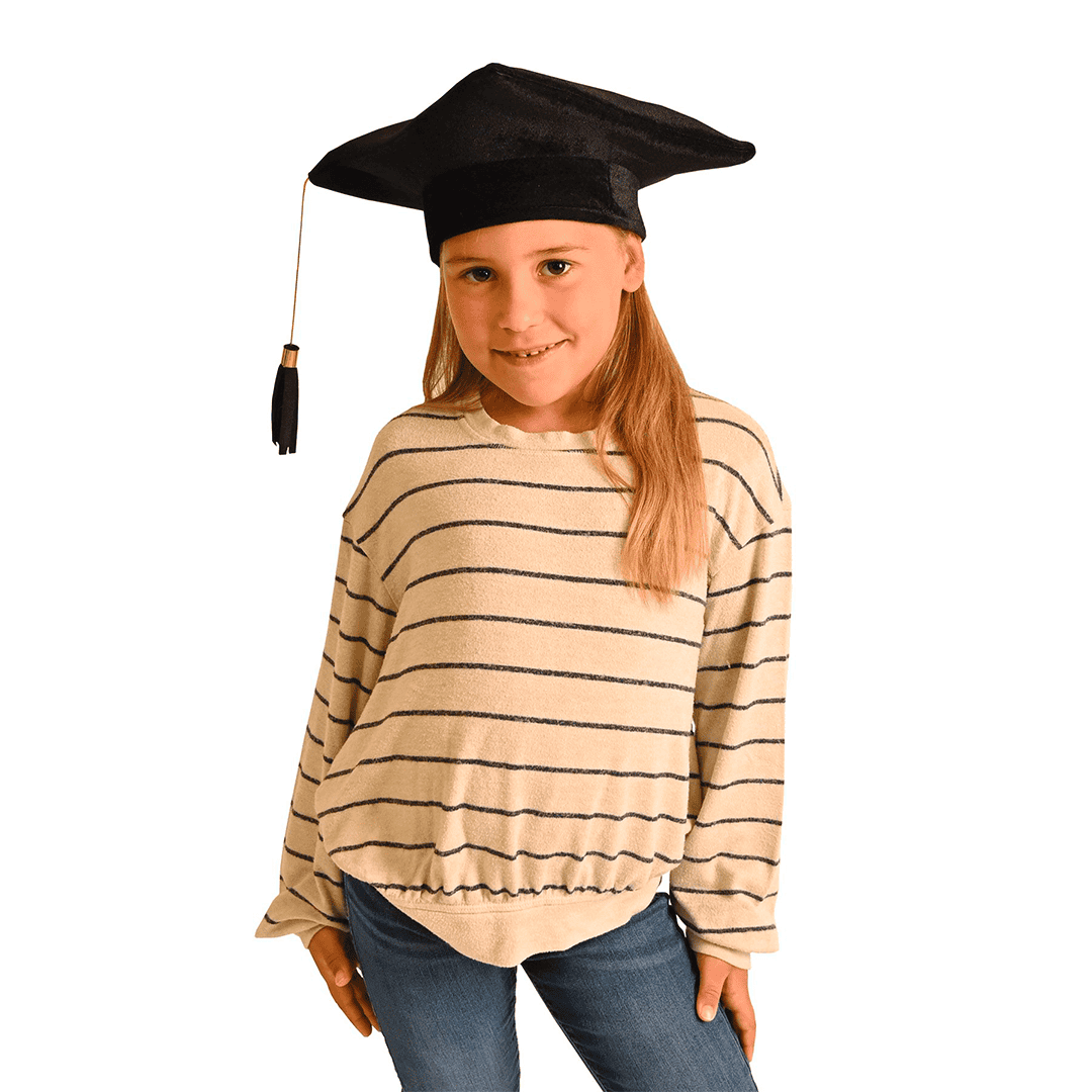Gorro de graduación de felpa, color negro; tamaño de cabeza mediano 10 pulgadas.
