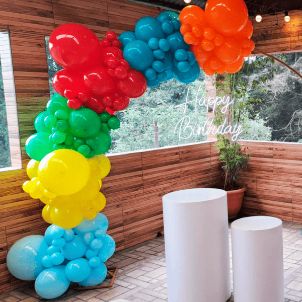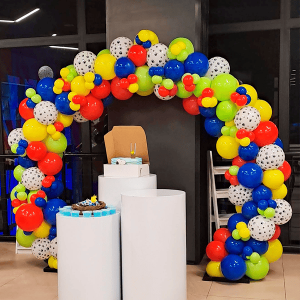 Guirnalda orgánica tipo arco con globos látex multicolor. Tamaño 6 metros. Se puede añadir globos metálicos, back, bases por un costo adicional. El precio varía según el tamaño de la guirnalda. ¡Cotiza la tuya hoy!