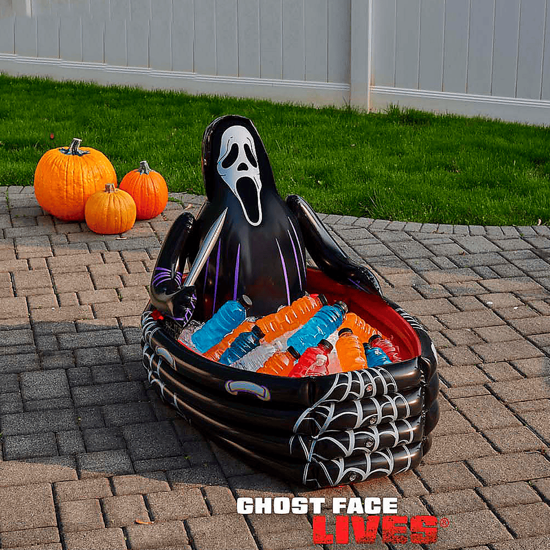 Enfriador de ataúd inflable con cara de fantasma® en blanco y negro