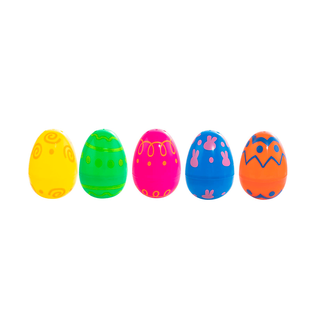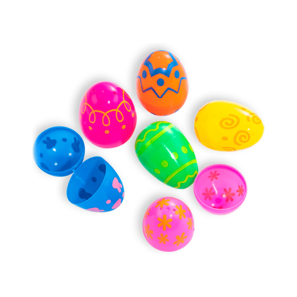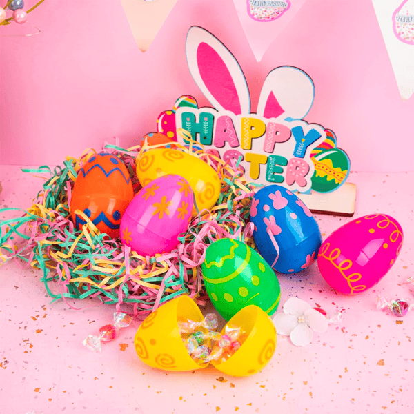 Huevos de Pascua de plástico, paquete de 10 unidades, incluye 9 huevos con diseño variado y un huevo dorado, regalo de decoración de Pascua, huevos sorpresa de plástico rellenables de 2.36 pulgadas, 6 diseños únicos, colores perfectos para rellenar con dulces, chocolates y juguetes durante la caza de huevos de Pascua