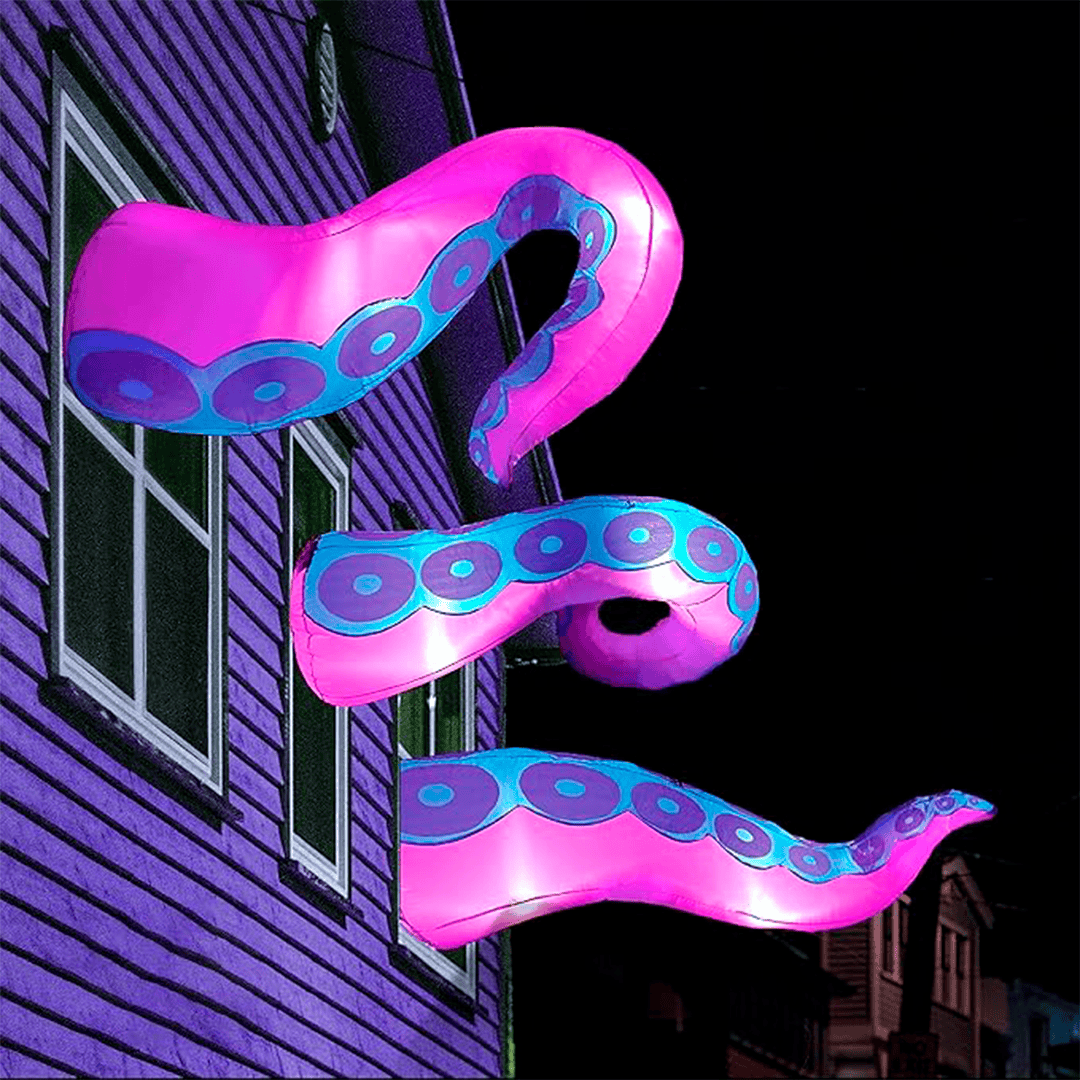 Decoración inflable de tentáculo de pulpo de Halloween tiene impresionantes efectos visuales, por lo que es una pieza central imperdible para tu fiesta de Halloween. Incluye tentáculos grandes de 4.5 pies, 5 pies y 6 pies de largo. El inflable viene con un cable extendido, ventosas, cuerdas sujetas y un enchufe con certificación UL. Incluye 3 piezas.