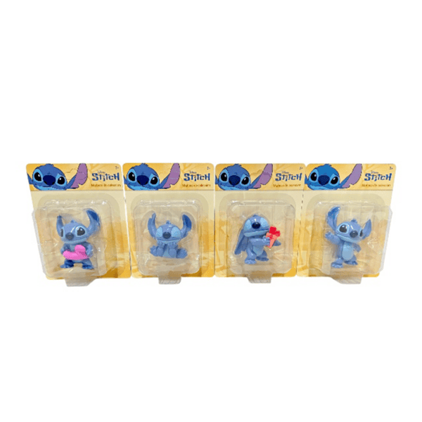 Coleccion de 4 Figuras Individuales de Stitch Juguete, tamaño de 3″. Figuras se venden por separado. Nota: Este producto es de presentación surtida, por lo que podrías recibir cualquiera de sus variaciones. Si prefieres un color específico, indícalo en tu pedido; se enviará según disponibilidad.