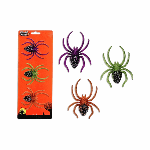 Araña con brillantina de dos tonos para Halloween. 3 por paquete. Tamaño 5,75 x 3,63″.