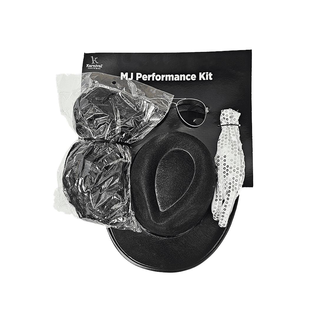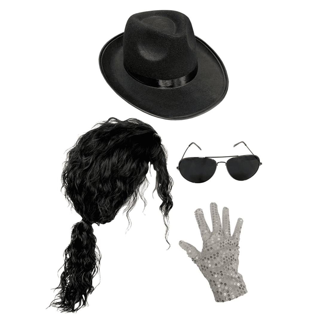 Kit de accesorios para disfraz de Michael Jackson, incluye peluca, guante, lentes y sombrero.