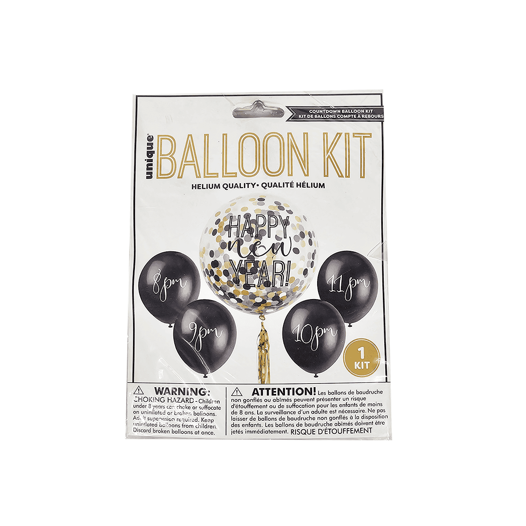 Kit de globos happy new year,paquete de 4 globos negros y un globo con confetti.