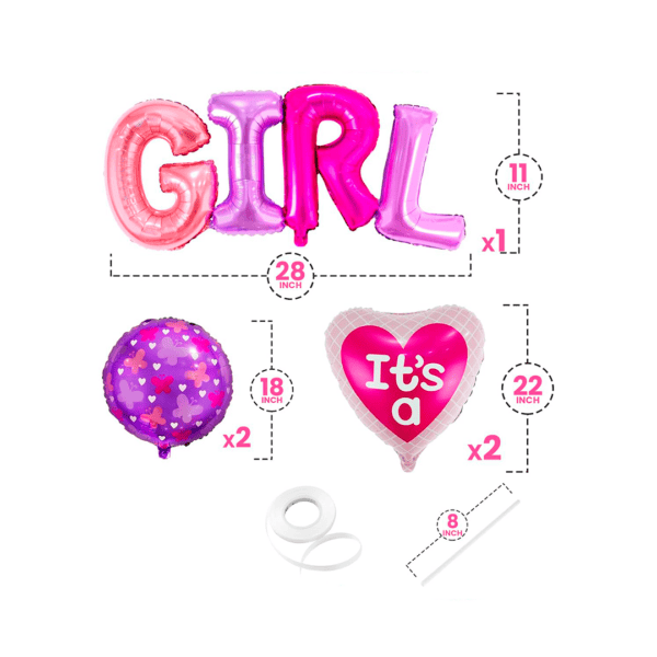 Juego de 4 globos de letras «It’s A Girl» para decoraciones de baby shower. Nota: No incluye helio.