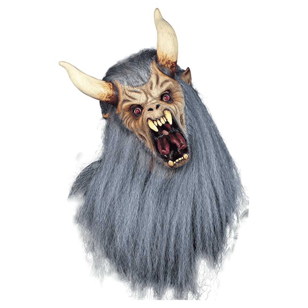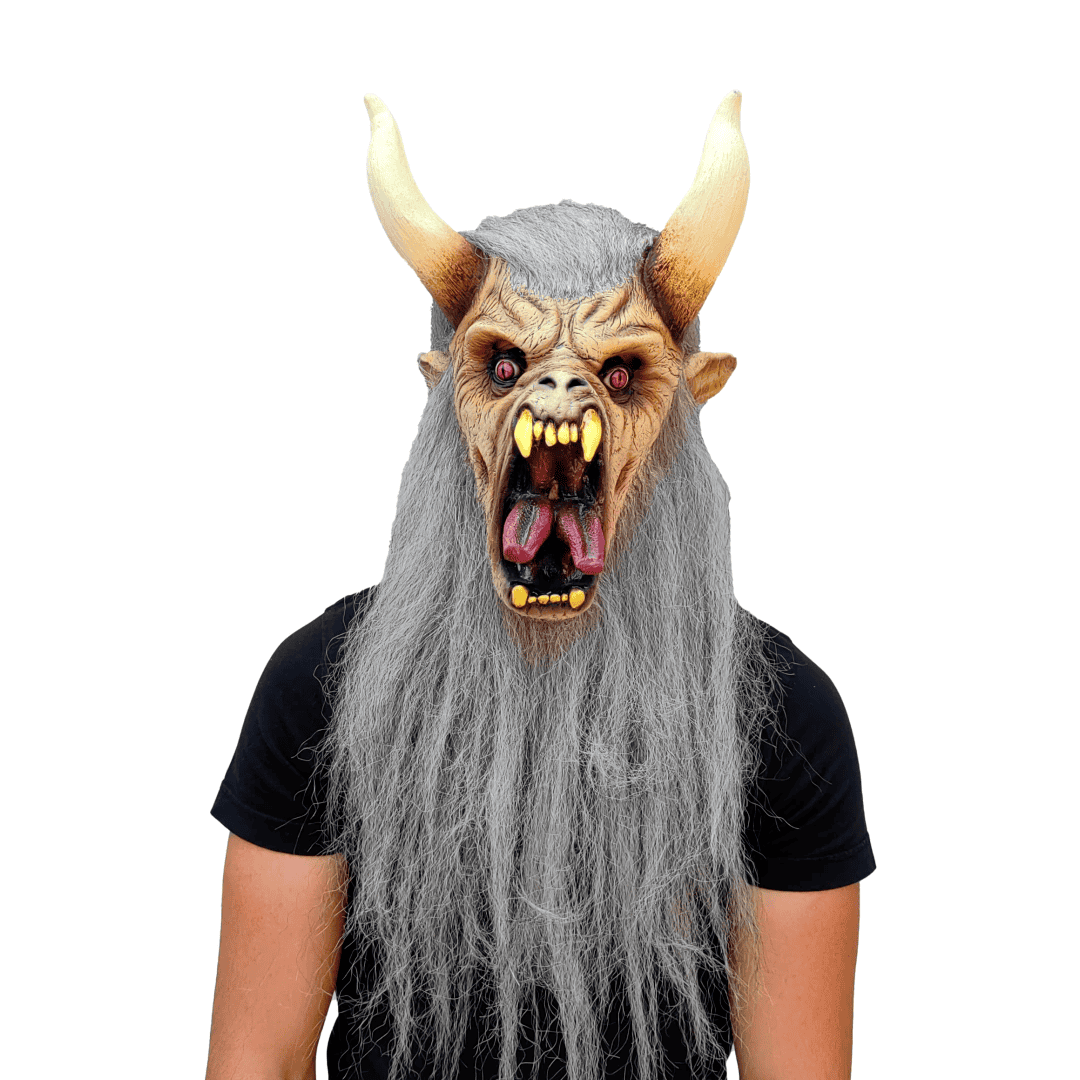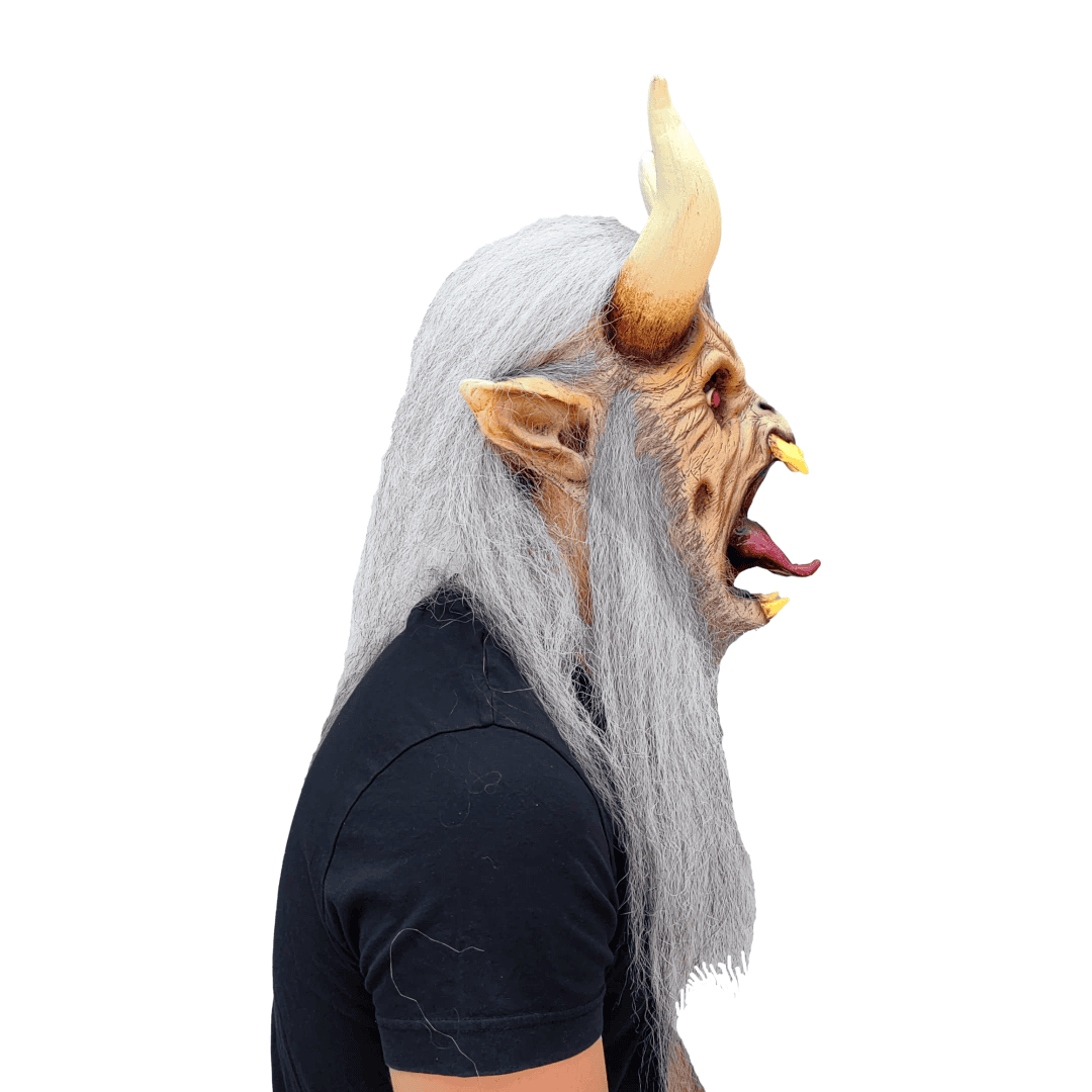 Máscara de látex Krampus White de la línea Horror Xmas. ¡Cuidado con tus travesuras! Krampus, el famoso personaje de la Navidad, está al acecho para visitar a aquellos que se portan mal. ¡Prepárate para una Navidad llena de sorpresas!