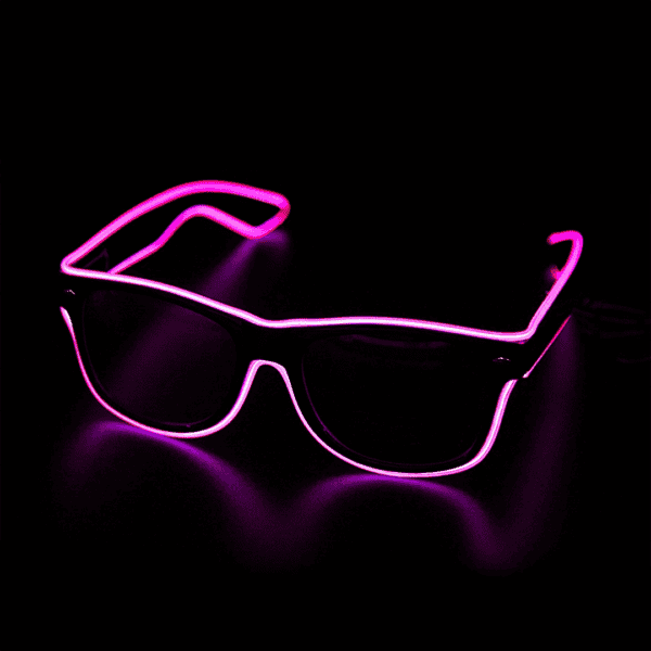 Lentes LED luz morado, unitalla, funciona con baterias doble AA (no inclute baterias). 1 unidad por paquete.