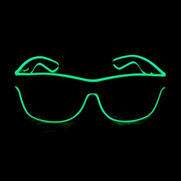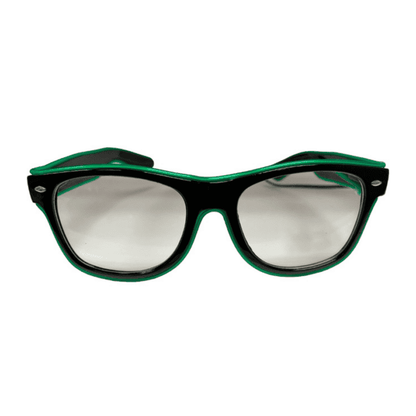 Lentes LED luz verde, unitalla, funciona con baterias doble AA (no inclute baterias). 1 unidad por paquete.