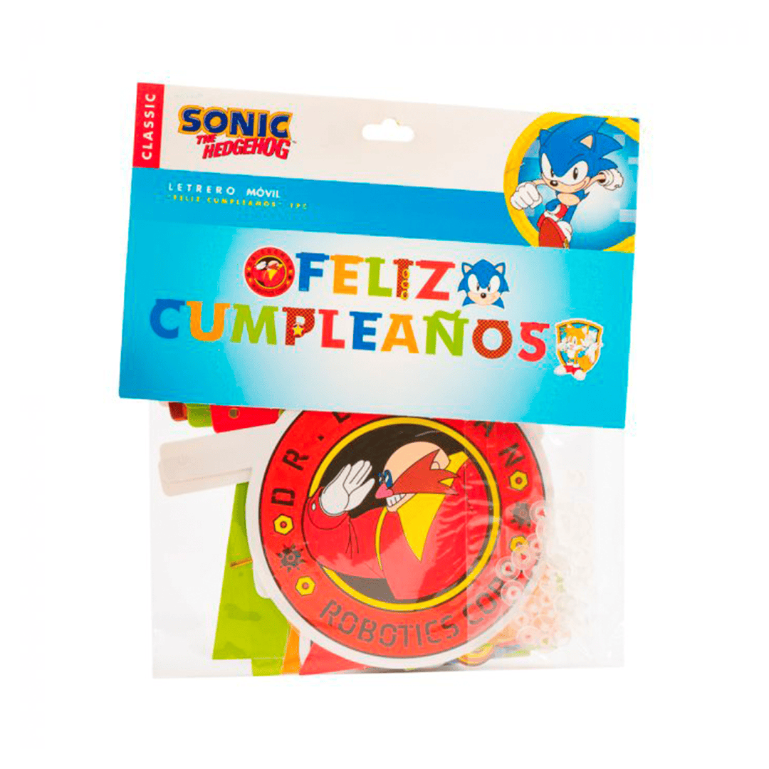 Letrero Feliz Cumpleañs Sonic, paquete de 1 unidad.